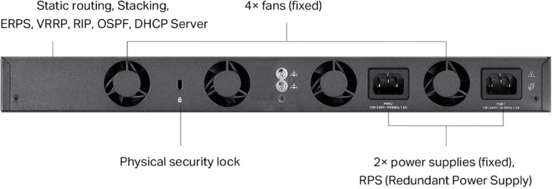 Vysoká dostupnost: 2x interní napájecí zdroj, VRRP a ERPS