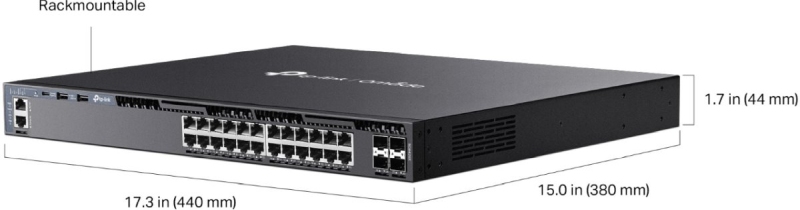 TP-Link SG6428X Omada 24 portový gigabitový RJ45 stackable L3 switch, 4×10 Gbps SFP+ sloty