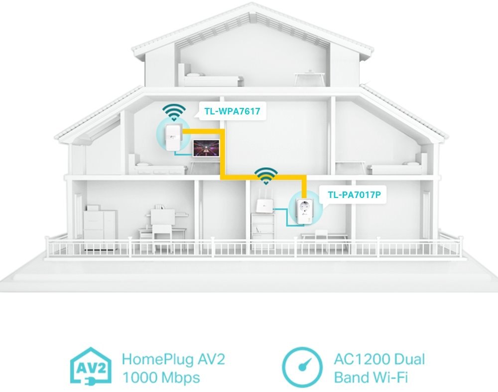 TP-LINK TL-WPA7617KIT - AV1000 Gigabit Powerline AC1200 Wi-Fi Kit, 1xGLAN - OneMesh™