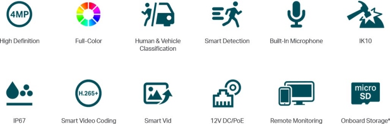 VIGI C240(2.8mm) je 4 megapixelová venkovní DOME kamera značky TP-Link s fixním objektivem 2.8 mm, bílým světlem a IR přísvitem do vzdálenosti 30 m a ethernetovým portem s podporou PoE. Kamera má max. rozlišení 2560 × 1440 px (při 30 fps), pozorovací úhel 96°, 2 nezávislé streamy, krytí IP67, digitální WDR snímač, audio mikrofon, slot na microSD…