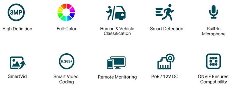 VIGI C430(4mm) je 3 MP vnitřní Turret kamera značky TP-Link s fixním objektivem 4 mm, bílým světlem a IR přísvitem do vzdálenosti 30 m a ethernetovým portem bez PoE. Kamera má max. rozlišení 2304 × 1296 px (při 30 fps), pozorovací úhel 89°, 2 nezávislé streamy, digitální WDR snímač, audio mikrofon, podporu ONVIF, kodeku H.264(+) a H.265(+). Kamera…