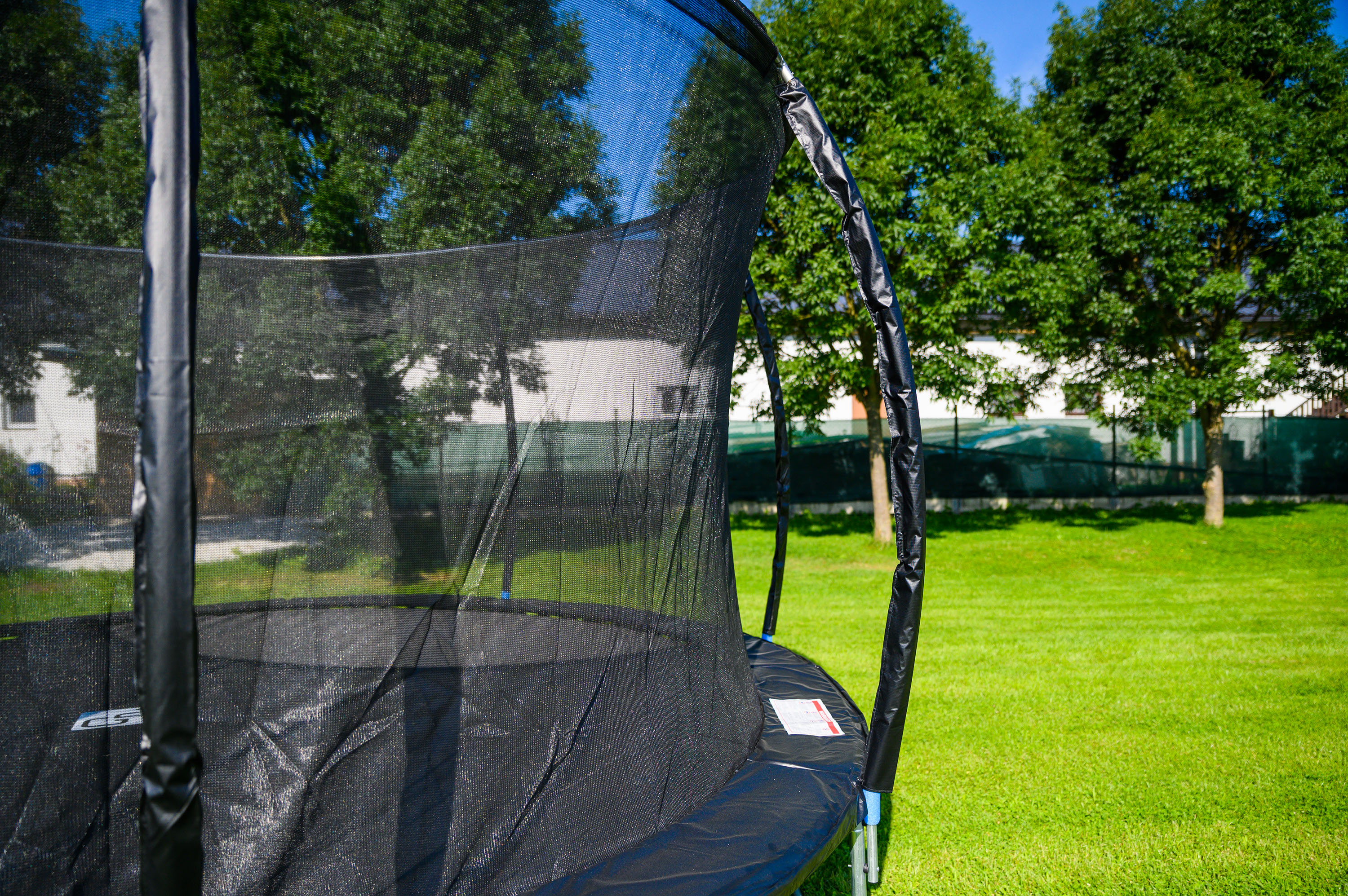 Ochranná síť trampolíny je pevná a hustě propletená, aby se předešlo možnému zachycení (například prstu) v oku sítě. K rámu trampolíny je ochranná síť upevněna z jeho vnitřní strany, takže se děti při skákání o rámové sloupky zahradní trampolíny G21 SpaceJump neuhodí.