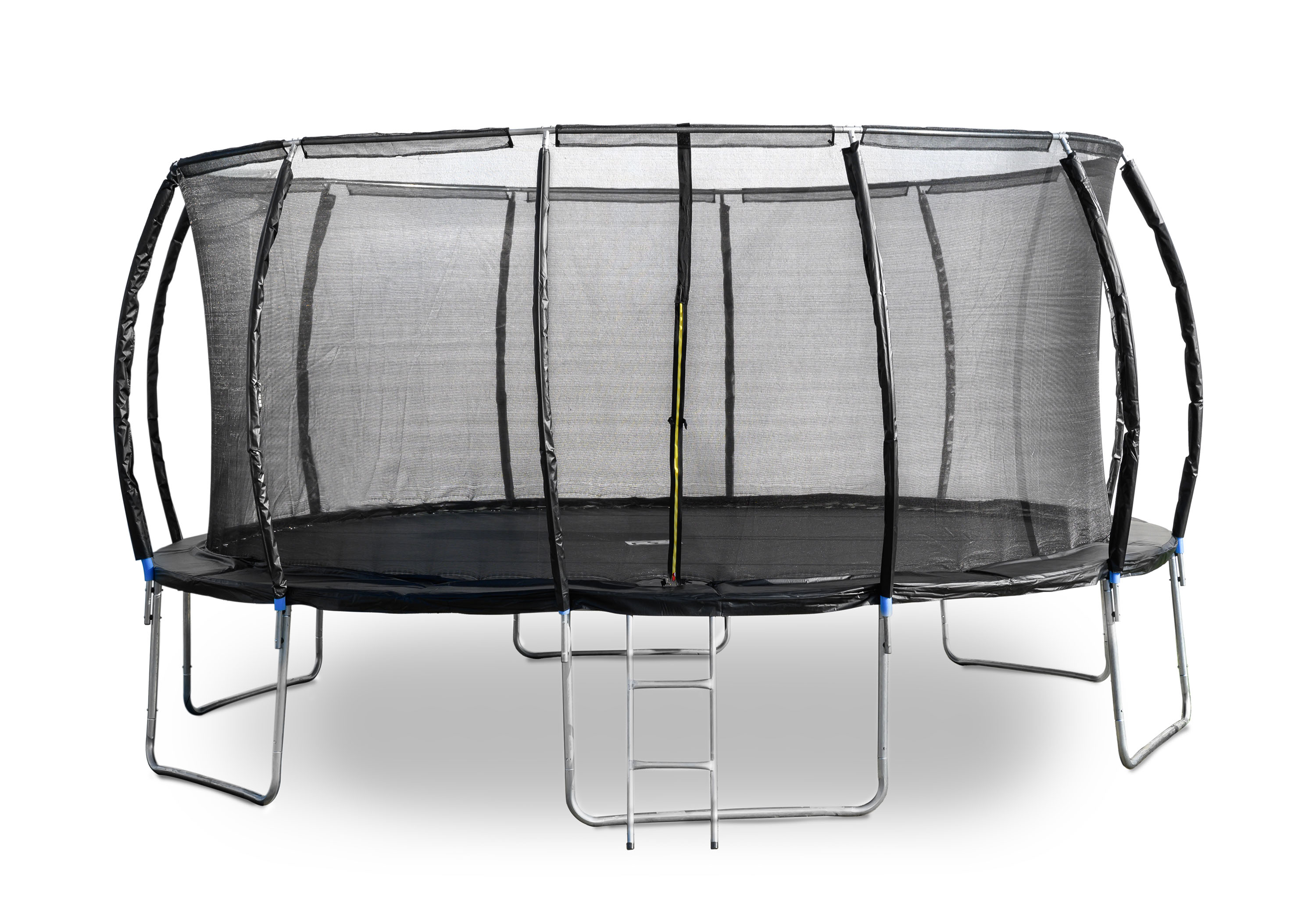 Pro pohodlný vstup na trampolínu dodáváme trampolínu G21 SpaceJump s žebříkem, který se připevní pod otvor v ochranné síti. Při skákání můžete vstup na trampolínu zajistit uzavíratelným zipem a pojistnou přezkou.