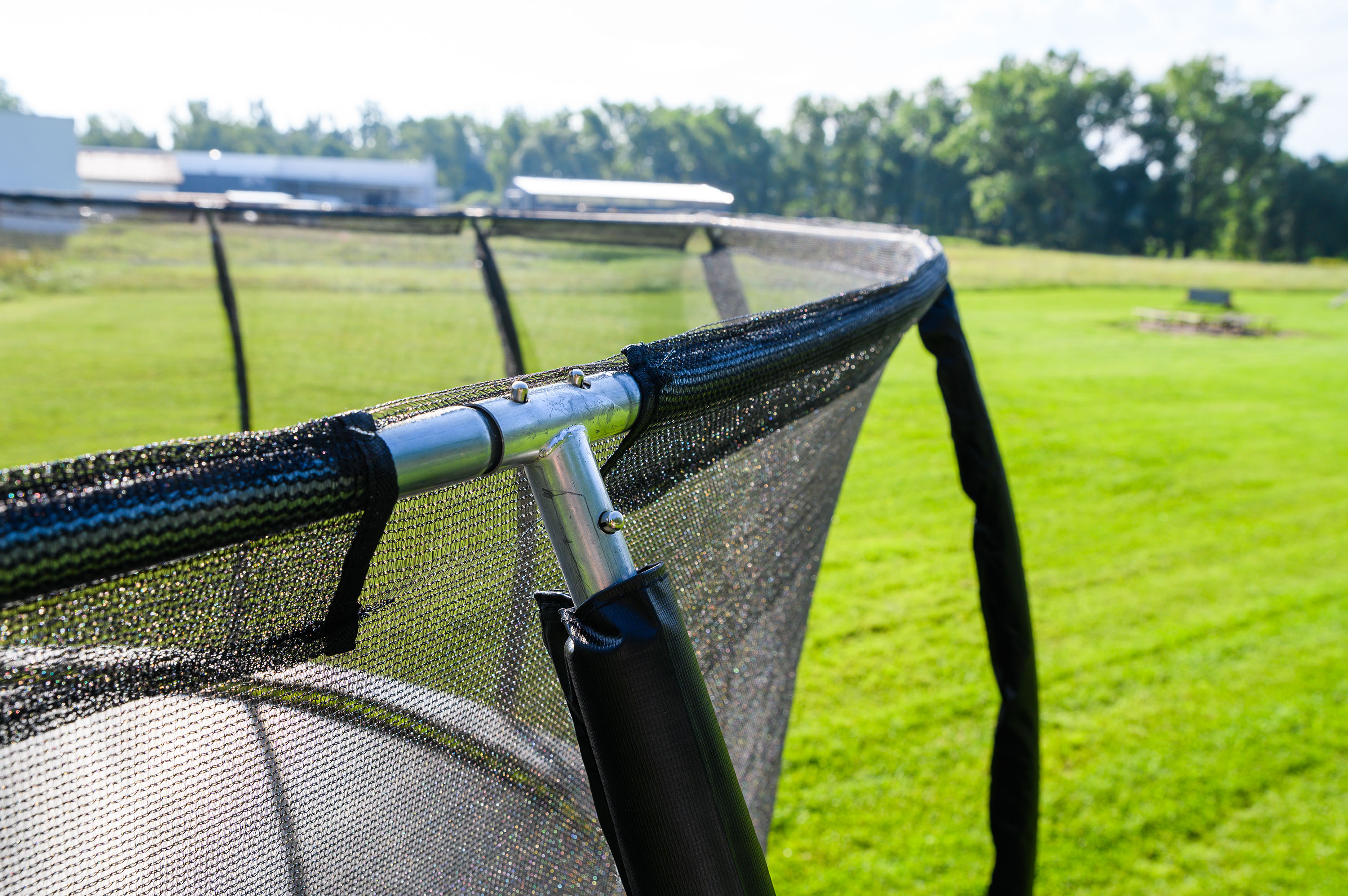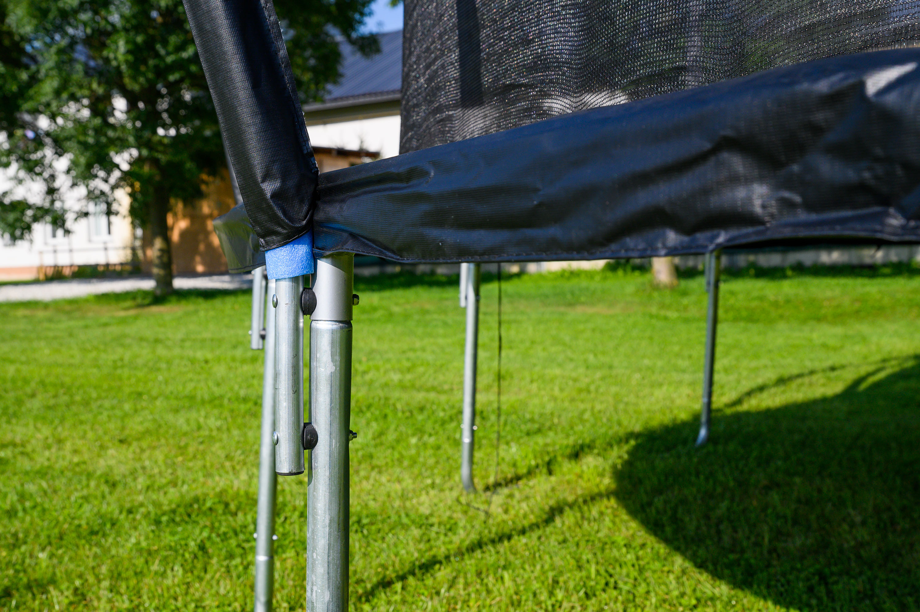 - Tyče, držící ochrannou síť trampolín, jsou chráněny pěnou
