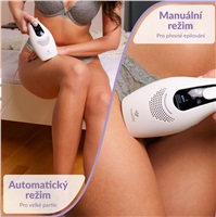 Epilátor TrueLife BELLE IPL E5 nabízí dva režimy. Manuální režim jednotlivých záblesků je vhodný k epilaci malých a těžko dostupných oblastí, jako jsou obličej, podpaží, oblast bikin nebo kotníky. S automatickým režimem rychle a pohodlně ošetříte větší oblasti, například nohy. Jakmile se přístroj dotkne epilované oblasti, jednoduše podržíte tlačítko ovládání po dobu 3 sekund, epilátor se přepne do automatického režimu, kdy při plynulém pohybu po pokožce bude neustále vydávat záblesky.