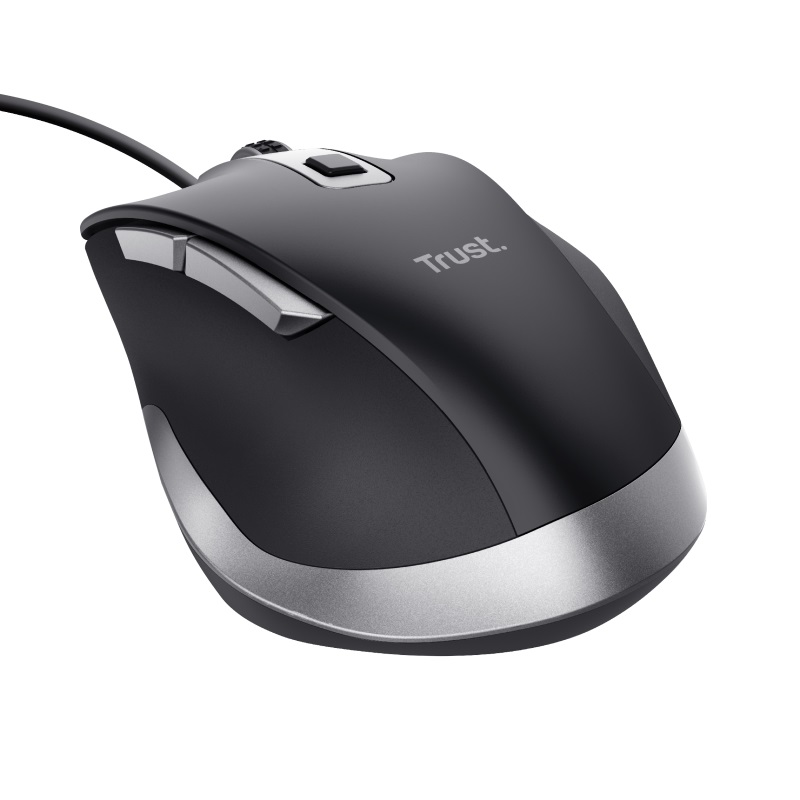 Trust Fyda/ Ergonomická/ Optická/ Pro praváky/ 5 000 DPI/ Drátová USB/ Černá-stříbrná