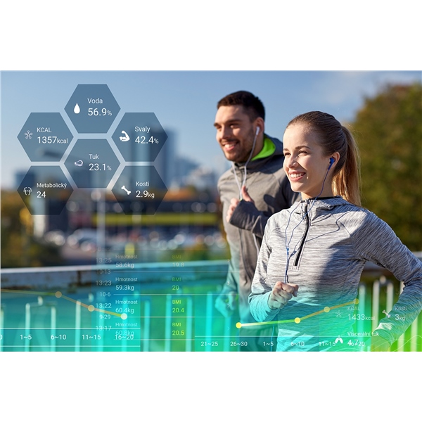 - V kombinaci s unikátní smart aplikací pomáhá sledovat, pravidelně zaznamenávat a vyhodnocovat vývoj základních tělesných charakteristik