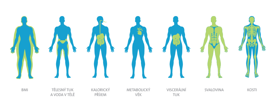 - Po spárování s vahou zobrazuje, analyzuje, komentuje a ukládá naměřená data – více než 18 různých tělesných charakteristik (např. viscerální tuk, tělesný tuk, podkožní tuk, vodu v těle, svalovinu, hodnocení postavy, stupeň obezity, BMI, hodnotu minimálního kalorického příjmu a další