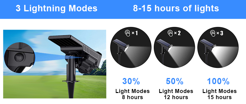 svícení 8-15 hodin, solární napájení, instalace do země i na zeď, 3