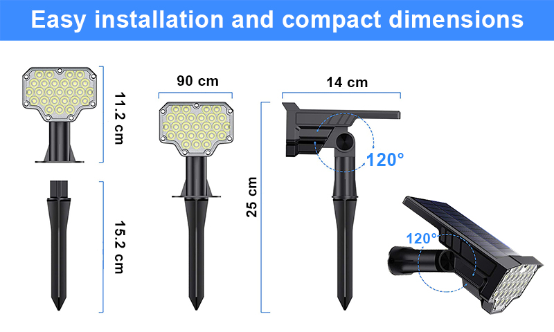 nastavení intenzity osvětlení dle aktuální potřeby. Rozptyl světla je až do 120° ! Odolnost proti dešti a vodě IP65 chrání světlo před přírodními vlivy, jako je déšť, stříkající