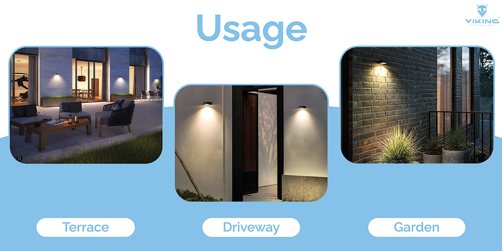osvětlení zahrad, dvorků či vchodů, s maximálním důrazem na