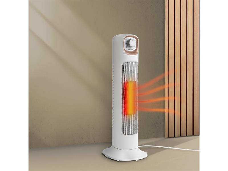 Tento třífunkční, designový sloupový ohřívač-ventilátor je nezbytným doplňkem do bytů, chladných místností a internátových pokojů. Sloupový ohřívač s kompaktním rozměrem a elegantním designem, který disponuje praktickou částí pro uchopení, díky kterému je snadno přemístitelný do kterékoliv místnosti. Díky nastavitelnému výkonu ve dvou stupních, každý může najít jemu vyhovující sílu ohřívání. menších pokojů.Funkce oscilování zajistí rovnoměrné proudění tepla v místnosti.