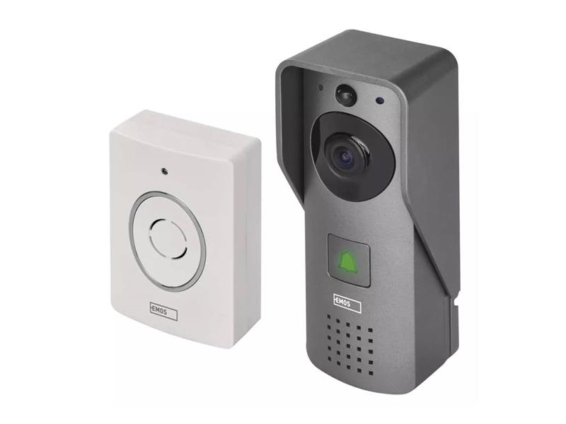 - obsah balení: 1× dveřní kamerová jednotka, 1× dešťová clona, 1× bezdrátový zvonek, 1× napájecí zdroj, 1× propojovací kabel, 1× instalační materiál, 1× manuál