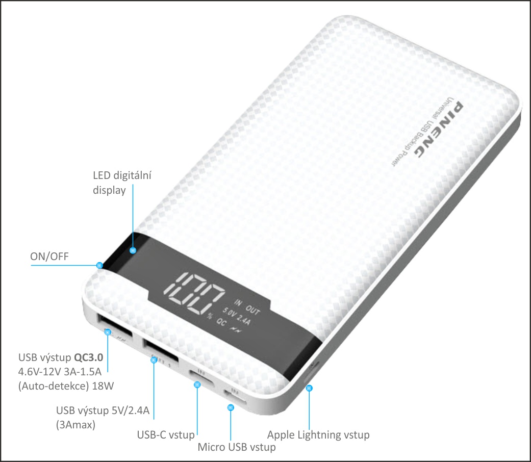 Powerbanka PINENG PN-961 QC3.0 10000mAh je kompatibilní pro