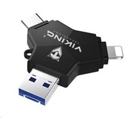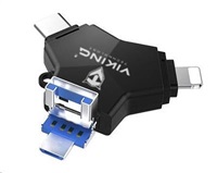 Viking USB Flash disk 3.0 4v1 s koncovkou Lightning/ Micro USB/ USB/ USB-C, 64 GB, černá