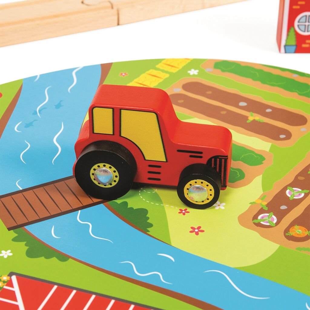 Okolo silnice a kolejí váš potomek rozestaví stromky, panáčky, značky nebo třeba zvířátka z farmy. Záleží na něm, jak trasu ozdobí. Také vás potěší, že je hračka kompatibilní i s ostatními vláčkodráhami na našem trhu. Během hraní si dítě rozvíjí představivost, obratnost a koordinaci.