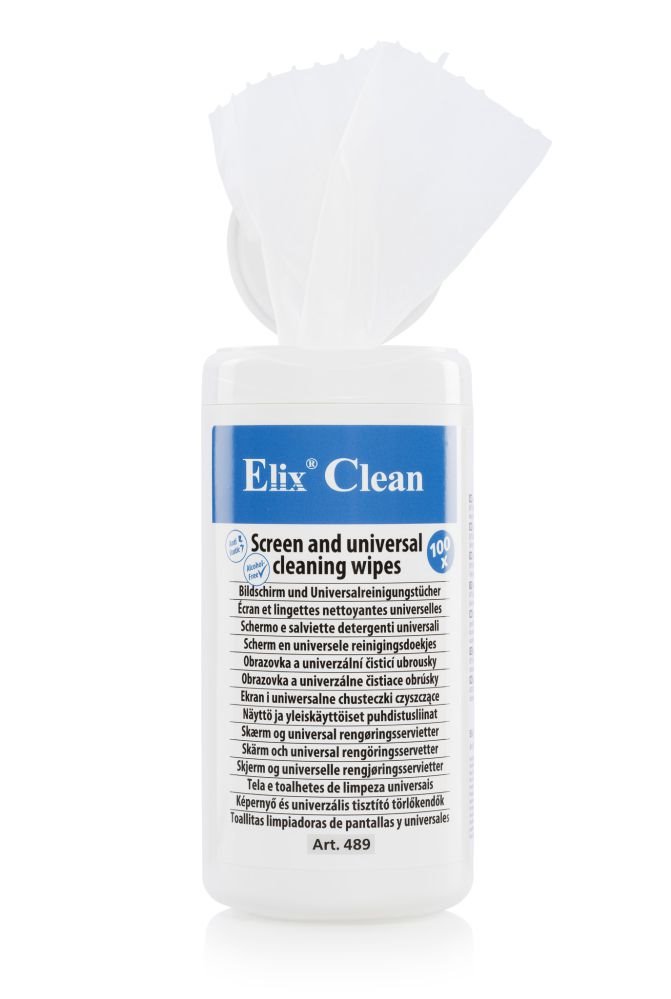 Vlhčené ubrousky ELIX vám zjednoduší čištění klávesnic, telefonů, kopírek, myší, tiskáren a jiné kancelářské techniky. V plastové dóze se nachází celkem 100 ubrousků. Vždy je máte po ruce a jen tak vám nedojdou. Navíc mají příjemnou vůni.