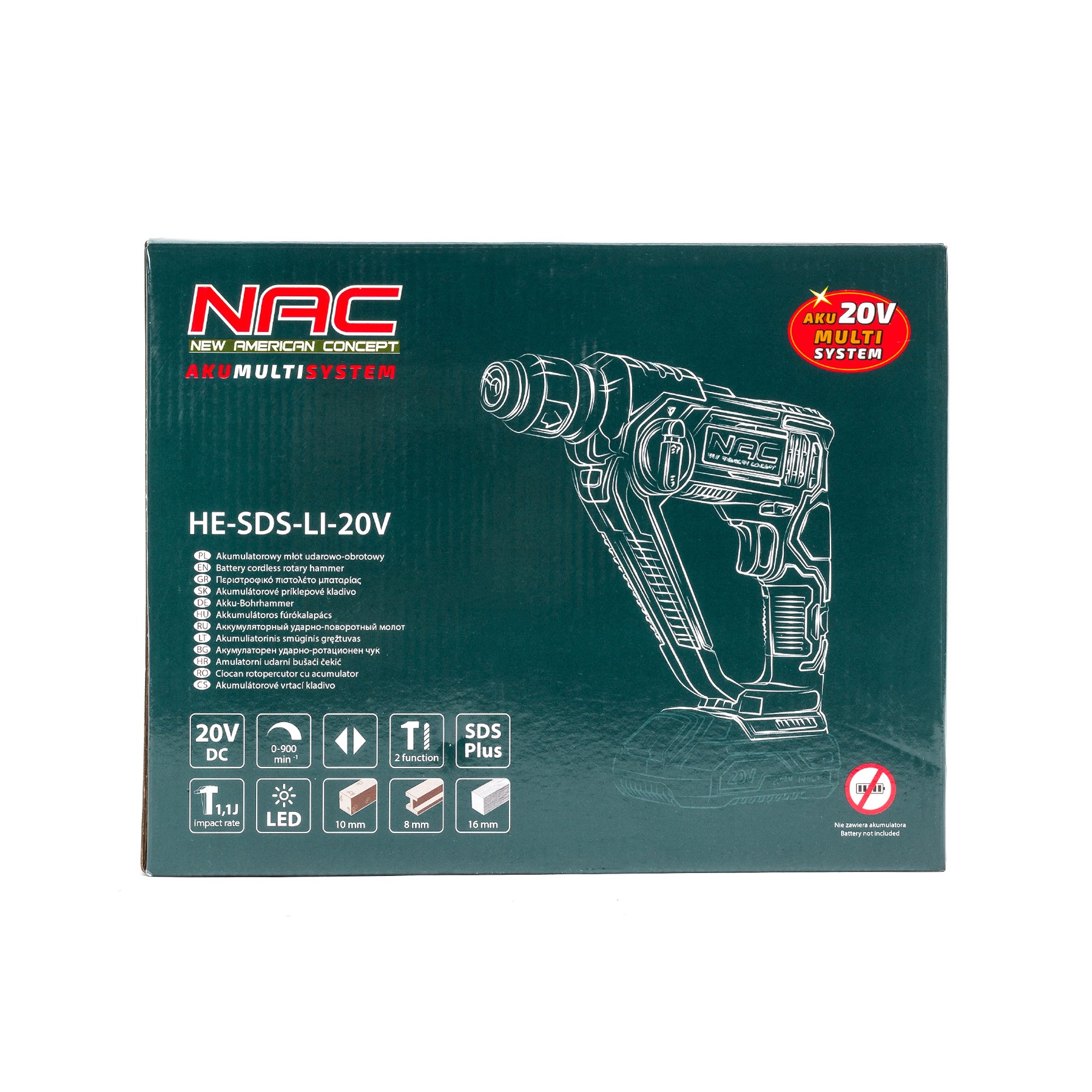 Aku vrtací kladivo NAC HE-SDS-LI-20V využijete při renovacích, instalacích, na stavební práce a nejrůznější opravy. S příklepem s ním můžete vrtat do kamene, betonu nebo cihel. Kladivo lze použít i pro bezpříklepové vrtání do dřeva, keramiky a kovu.