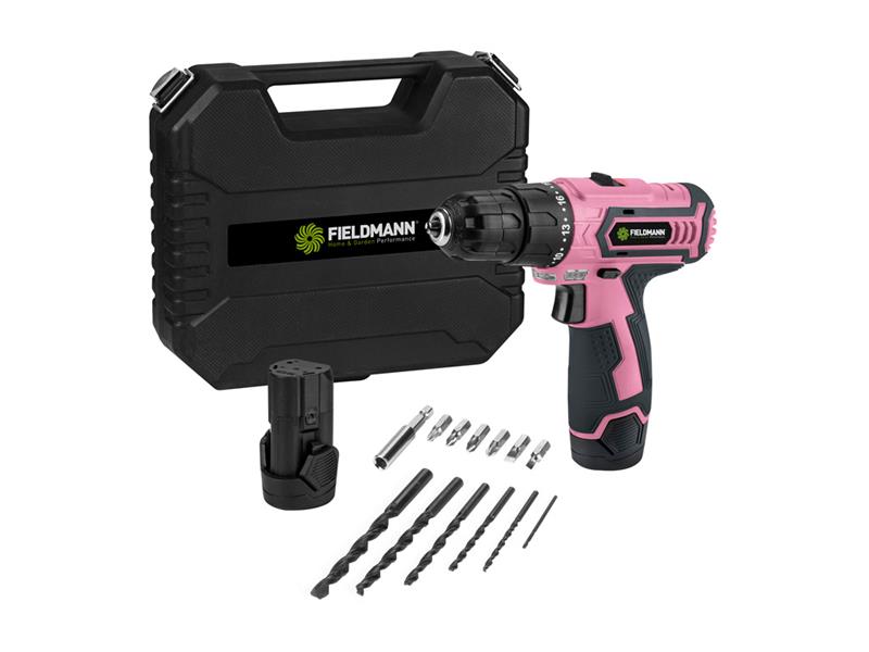 Akumulátorová vrtačka od renomovaného výrobce FIELDMANN zajistí maximálně pohodlné a rychlé vrtání / šroubování bez překážejícího kabelu. Dvourychlostní převodovka – ideální pro vrtání do dřeva, kovu nebo plastu. O komfortní práci se kromě ergonomické rukojeti ve které je zabudovaná baterie stará též pracovní LED světlo díky kterému bude jakákoliv práce v dílně snazší. Vrtačka je dodávaná v praktickém plastovém kufříku s nabíječkou a 2 x 1,3 Ah akumulátorem, doplněným o 13 ks příslušenství.