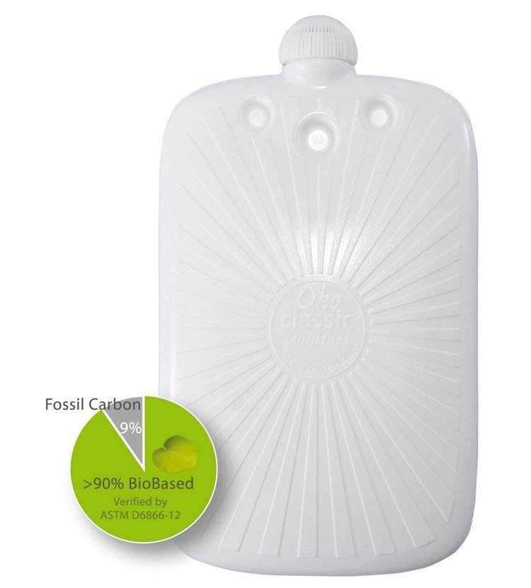 Hlavní surovina pro výrobu materiálu termoforu je termoplast. Je uzavřený těsnícím uzávěrem, který nepropustí ani kapku vody. Termofory Hugo Frosch z řady Classic Comfort jsou vyrobené z více než 90 % obnovitelných surovin. Jsou testovány podle ASTM D 6866-12. Navíc je můžete recyklovat a tím ulevit naší přírodě.
