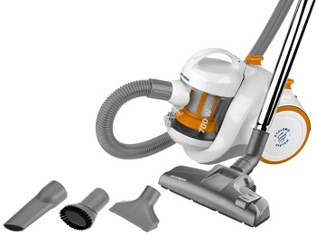 Transparentní nádoba o objemu 1,5 l nahrazuje běžné prachové sáčky, které již nebudete muset dokupovat. Jednoduchá manipulace i nenáročné skladování je zajištěno díky praktickým rozměrům a nízké hmotnosti. Měkčená kola poskytují ochranu podlah a díky přednímu otočnému kolečku o 360 ° je umožněný hladký všestranný pohyb vysavače. Samozřejmostí je automatické navíjení napájecího kabelu.
