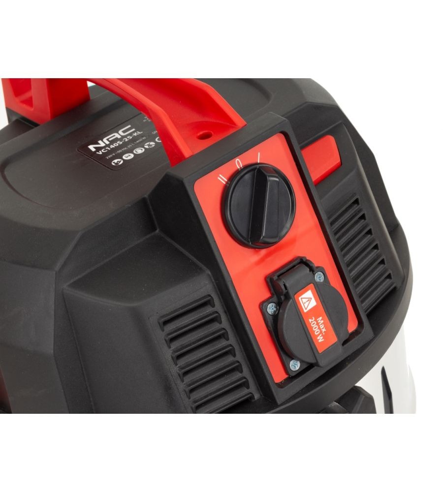 Pořiďte si do dílny kvalitní průmyslový vysavač NAC VC140S-25-KL 1400W, který si poradí s nečistotami všeho druhu. Využijete ho jak pro suché, tak pro mokré vysávání. Navíc má v sobě zásuvku s funkcí START/STOP, do které si připojíte jakékoliv elektrické nářadí s maximálním výkonem 2 000 W. Jakmile pak nářadí zapnete, vysavač se automaticky spustí.