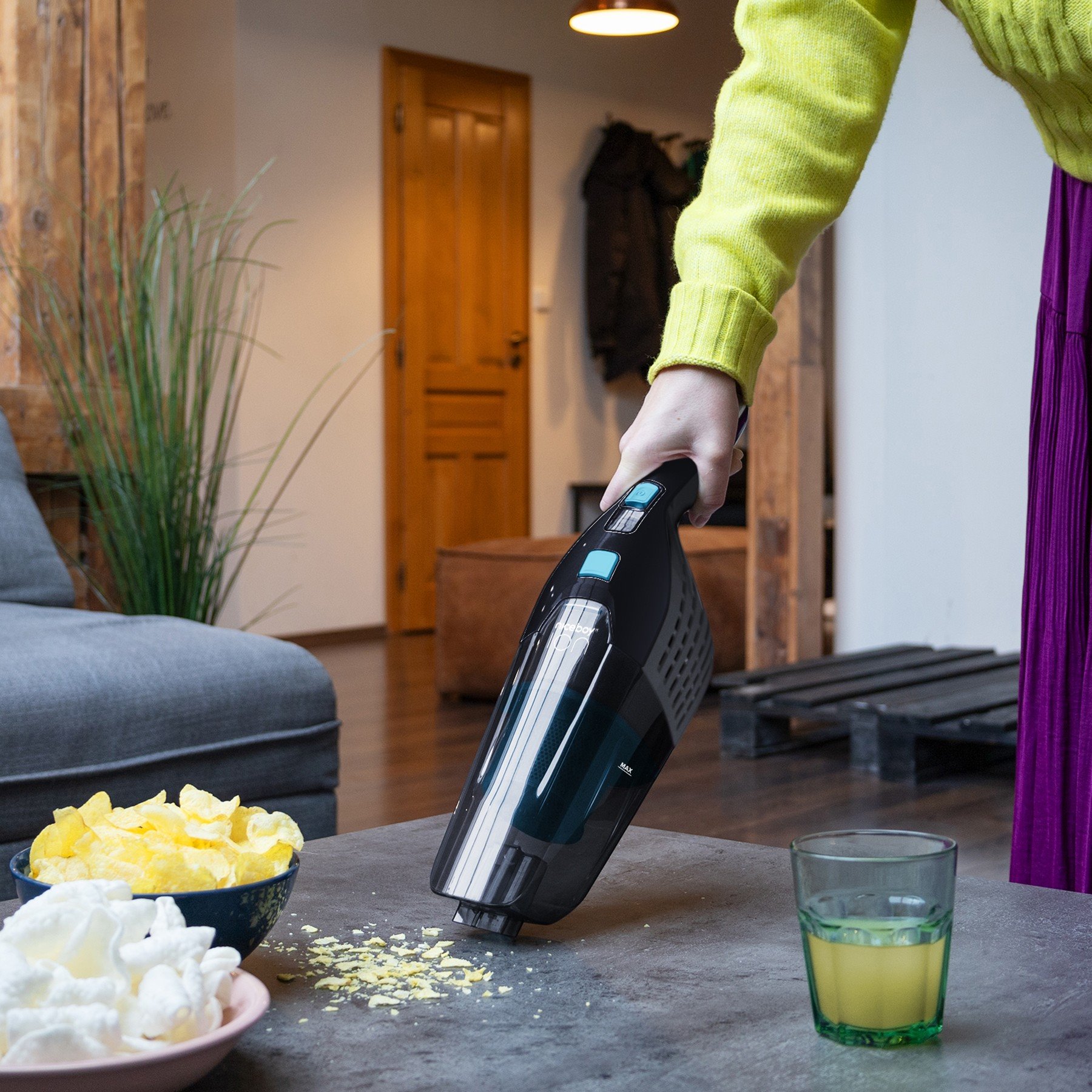 S vysavačem se vám pohodlně zachází. Nejenže je lehký, ale zároveň má ergonomickou rukojeť. Ve chvíli, kdy skončíte s uklízením, ji můžete sklopit. Vysavač poté nezabere tolik úložného místa, takže si usnadníte jeho skladování.