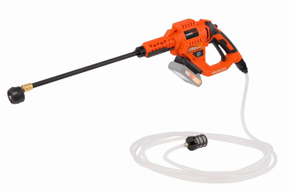 Akumulátorový vysokotlaký čistič POWDPG80620 značky Powerplus si hravě poradí i se silným nánosem špíny. 6 m dlouhou sací hadicí s filtrem můžete odsávat vodu i ze vzdálenějších zdrojů, jako jsou rybníky, potoky nebo jezera. Je ideální na cesty, nepotřebuje totiž přístup k připojení do elektrické sítě. Využijete ho například k mytí zablácených horských kol nebo automobilů.