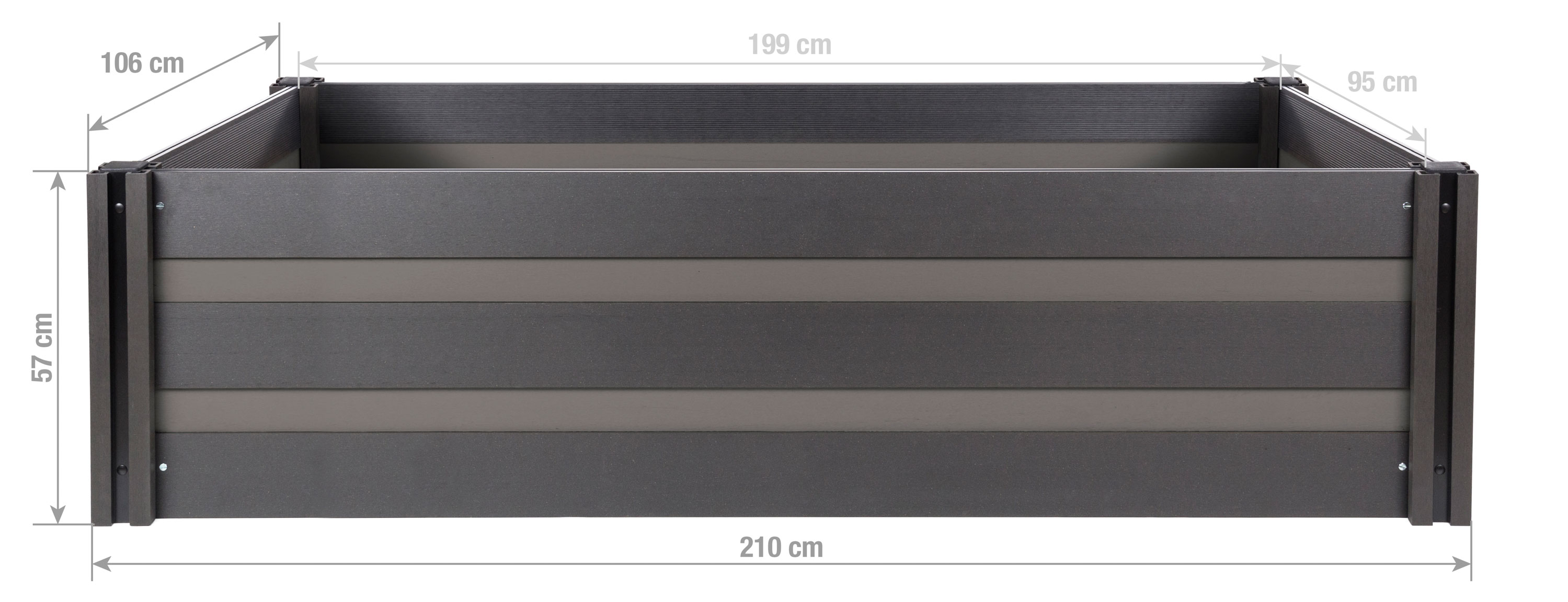 Vyvýšený záhon G21 Crop Duo má k osetí/osázení plochu 1,89 m², stěny jsou silné 2,5 cm a výška vyvýšeného záhonu je 57 cm.