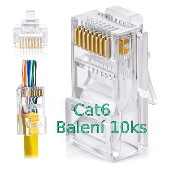 Koncovka UTP RJ-45EZ Cat6, balení 10ks, krimpovací, licna i drát
