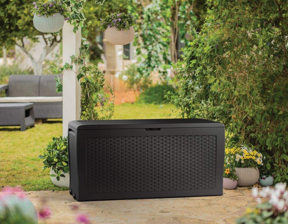 - Praktický úložný box Keter Samoa Rattan nabízí kapacitu 270 l pro přikrývky, polštáře nebo různé zahradní potřeby a náčiní