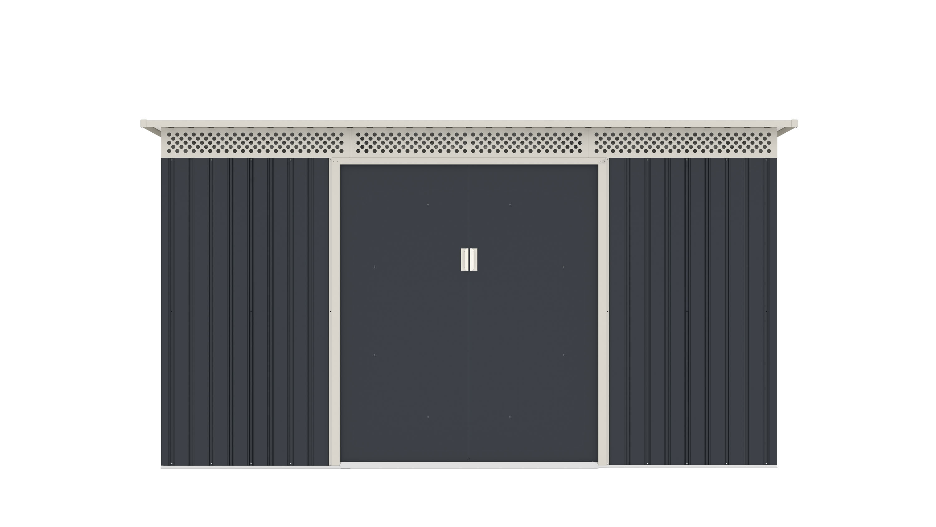 Zahradní domek GRAH 483 má dvoukřídlé dveře o celkové šířce 138 cm. Vstup do domku je tak opravdu pohodlný, i když nesete nebo vynášíte objemnější věc.