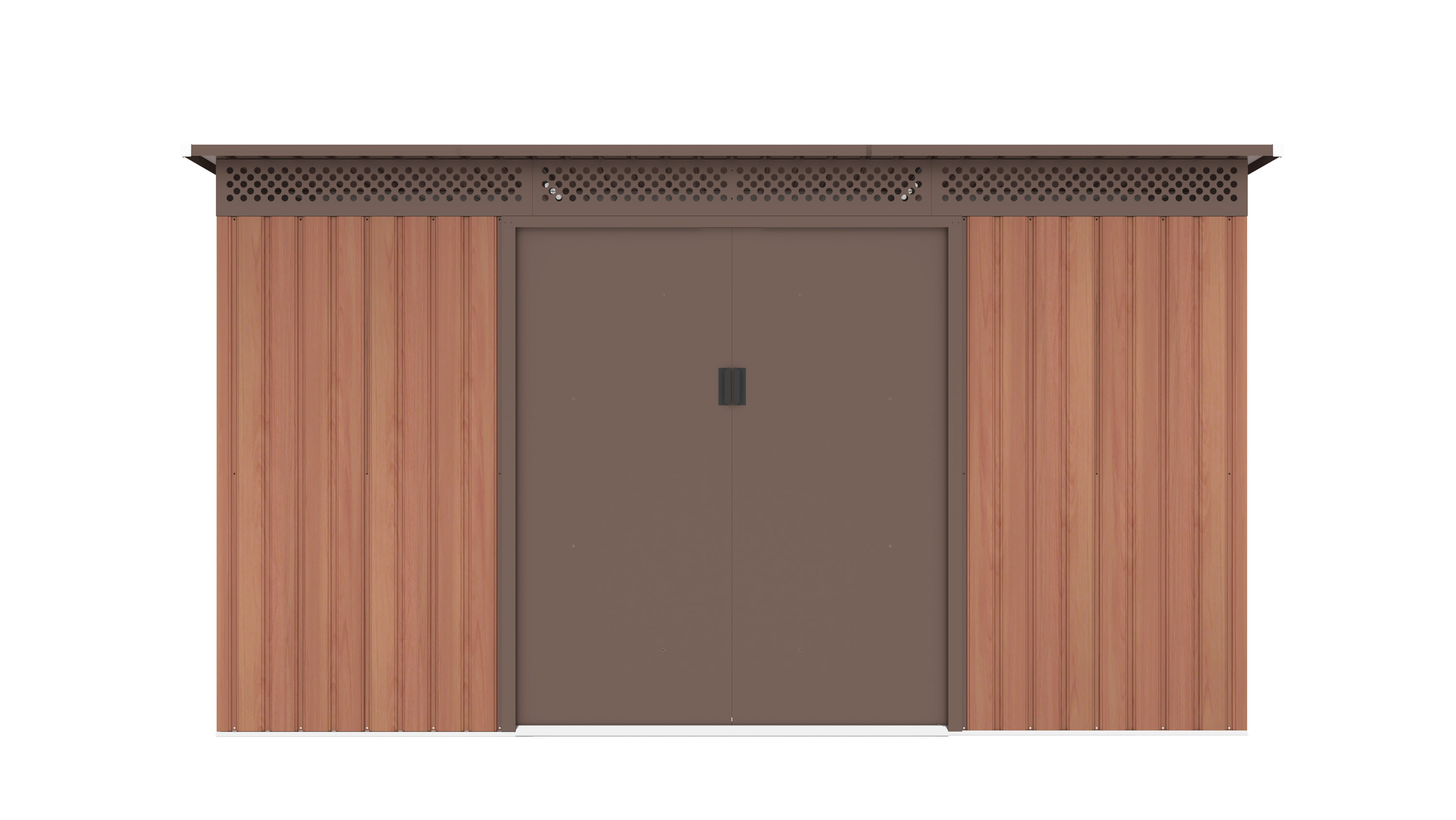 Zahradní domek GRAH 700 má dvoukřídlé dveře o celkové šířce 138 cm. Vstup do domku je tak opravdu pohodlný, i když nesete nebo vynášíte objemnější věc.