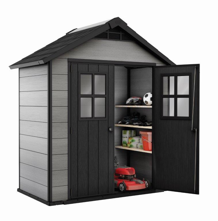 - Do praktického zahradního domku Keter Oakland 754 uložíte zahradní i dílenské nářadí, jako jsou různé sekačky, pily, vrtačky, grily i žebříky