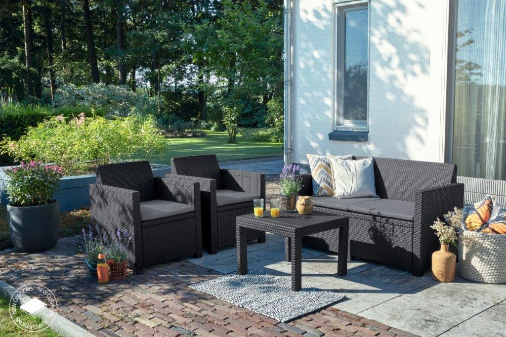 Vysoká kvalita zpracování z polypropylenové pryskyřice poskytne celé sadě prvotřídní odolnost proti extrémním vlivům počasí, hnilobě a opotřebení i stálost barev při vystavení na přímém slunečním svitu. Už nikdy se tak nemusíte strachovat, že by váš nábytek začal ztrácet svou barvu, rezivět, hnít nebo se loupat. Konferenční stolek má úložný prostor, takže různé deky a další polštáře snadno ochráníte před rozmary počasí. Sestavení setu je pak naprosto jednoduché a zabere pár krátkých chvil, kdy montáž zvládne skutečně každý. Navíc je syntetická pryskyřice nenáročná na údržbu, jelikož vám k čištění postačí pouze hadřík s horkou vodou.