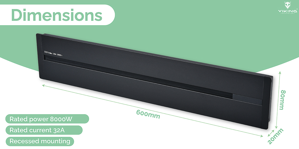 Zásuvková lišta • připojení až 7 zásuvkových modulů • kompaktní rozměry 8 x 2 x 60 cm • zápustná montáž • ideální pro domácí i kancelářské využití • napájení 230V, 50Hz • robustní hliníková slitina • jmenovitý proud 32 A • jmenovitý výkon 8000 W • izolační napětí 500V • ochrana IP20