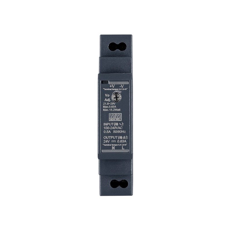 - 1x zdroj Mean Well HDR-15-24 na DIN lištu, 24V, 0,63A