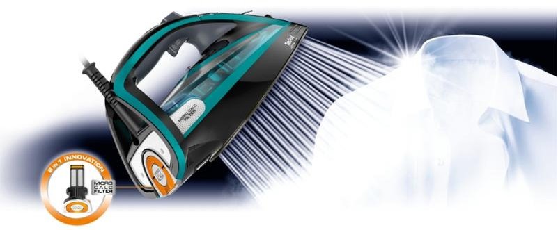 Žehlička Ultimate Pure FV9844E0 značky Tefal představuje prvotřídní parní žehličku s mimořádným výkonem a unikátní technologií proti vodnímu kameni. Unikátní systém filtru mikročástic vodního kamene pomáhá díky filtraci veškeré páry bránit vzniku usazenin a skvrn od vodního kamene na oděvech. Mimořádně výkonná parní žehlička s parním rázem až 250 g/min, který si poradí i se silnými látkami a těmi nejodolnějšími záhyby. Žehlička s velice tenkou novou žehlicí plochou Durilium AirGlide Autoclean, která zůstává stále čistá a nabízí nejlepší kluznost pro maximální pohodlí a účinnost.