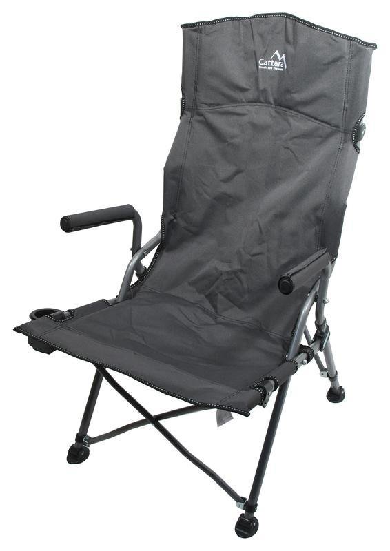Odpočiňte si u vody, v přírodě, v kempu, na hudebním festivalu nebo jen poseďte chvíli na čerstvém vzduchu na zahradě. Skládací židle Cattara MERIT XXL vám poskytne dostatečné pohodlí. Uvelebíte se na kvalitně sešitý potah, ruce položíte na polstrované rukojeti a zády se opřete o opěradlo. Na spodní části konstrukce najdete dokonce vyklápěcí držák na pití.