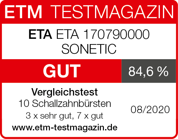 Revoluční technologie v péči o dentální hygienu. Skvělá při prevenci i řešení stomatologických obtížích. Pokud máte citlivé zuby a hledáte vhodnou variantu pro jejich čištění, tak právě kartáček ETA Sonetic je ten pravý. Kartáček odstraňuje zubní plak a čistí i mezizubní prostory lépe, než běžné manuální kartáčky. Pomáhá v prevenci proti zubnímu kazu, zubnímu kameni, krvácivosti dásní, zánětu dásní, zápachu z úst a parodontóze. Má tři režimy čištění: intenzivní a šetrné čistění a masážní režim pro lepší prokrvení dásní. Zdravé dásně totiž znamenají zdravý chrup. Hlavice kartáčku je speciálně navržená tak, aby přesně kopírovala tvar zubů a linii dásní. Perfektně tak odstraní všechny nečistoty.
