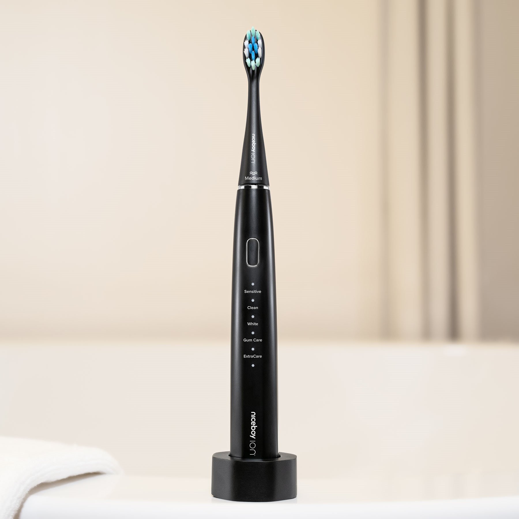 Vysokofrekvenční kartáček Niceboy ION Sonic využívající až 43 000 kmitů za minutu se efektivně postará o váš zářivě bílý úsměv. Jelikož má každý trochu jiné zuby i požadavky na čištění, nabízí Sonic hned několik režimů čištění.