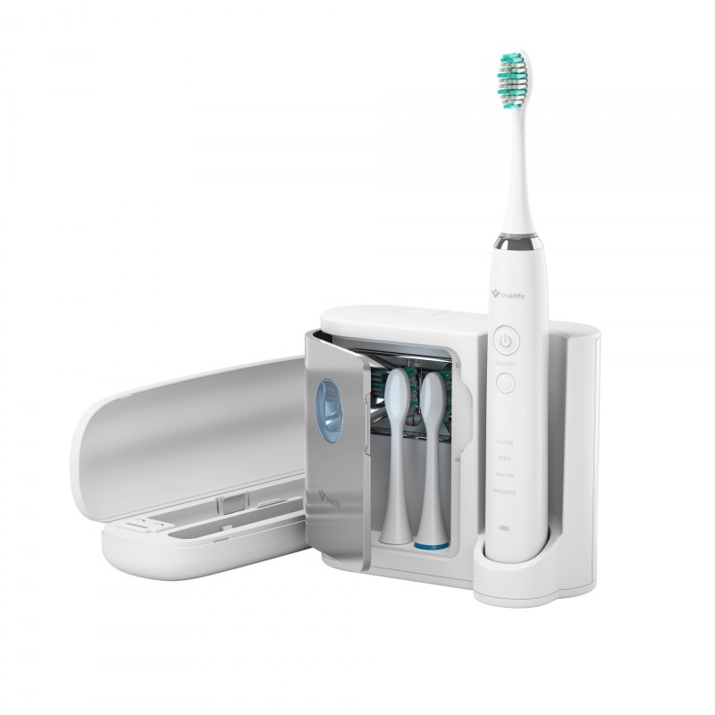 SonicBrush UV nabízí čtyři režimy čištění, které se kompletně postarají o čistá a zdravá ústa. Základní režim clean zbaví pomocí sonické technologie chrup i dásně škodlivého plaku, čímž snížíte riziko zubního kazu. Režim whiten upraví pohyby kartáčku tak, aby efektivně bělil vaše zuby a odstranil pigmentové skvrny. Mód massage stimuluje a prokrví dásně, což zlepší jejich zdraví. Pro všechny s citlivými zuby je k dispozici režim soft nabízející nejšetrnější čištění.