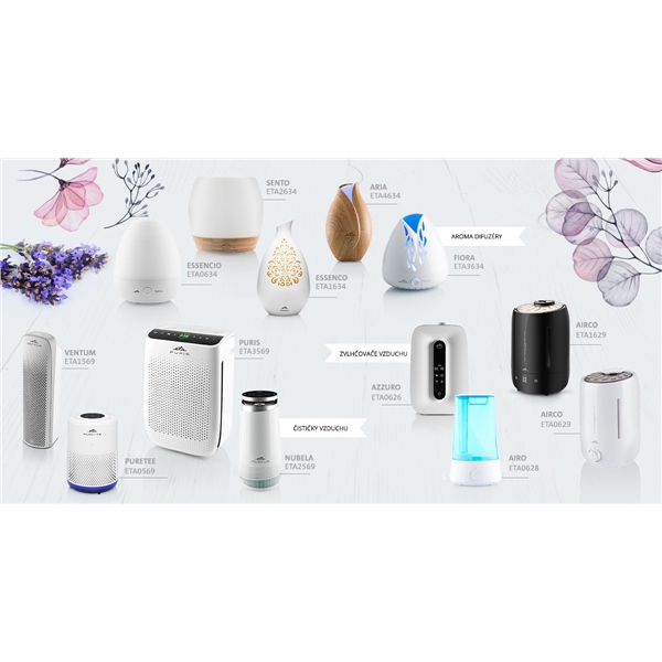 Zvlhčovač vytvoří pohodovou domácí atmosféru během topné sezóny i mimo ni. Měří hodnotu relativní vlhkosti a pomocí funkce automatické regulace svůj provoz po dosažení požadované vlhkosti přeruší. ETA Azzuro je vybaven funkcí uvolňování volných záporných iontů. Záporné ionty odstraní ze vzduchu škodlivé částice, alergeny a prach a můžete si užívat čisté prostředí.