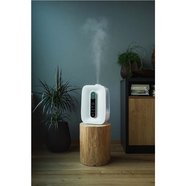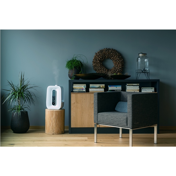 O rozptýlení páry do všech stran se postará otočný výstup páry a ultrazvuková technologie. Pomocí přirozené cirkulace vzduchu je pak o rovnoměrné zvýšení vlhkosti postaráno. Vstupný ochranný filtr je samozřejmou součástí.