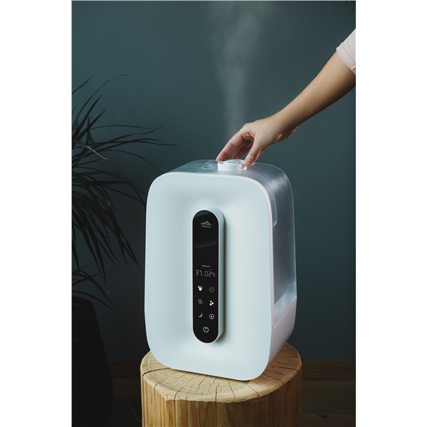 Všechny obtíže spojené s nízkou vlhkostí ve vašem bytě vyřeší zvlhčovač vzduchu ETA Azzuro 0626 90000, ideální pro prostor o rozloze až 50 m2. ETA Azzuro zvládne díky svému příkonu 115 W a ultrazvukovému oscilátoru, který mění vodu na parní mlhu, dosáhnout velkého zvlhčovacího výkonu. Je možné také zvolit funkci tvorby teplé páry, díky které bude zvlhčování mnohem příjemnější zejména v zimních měsících. Komfort domácího prostředí zvýšíte zapnutím ionizátoru, který pomocí generování záporných iontů skvěle pročistí vzduch v místnosti.