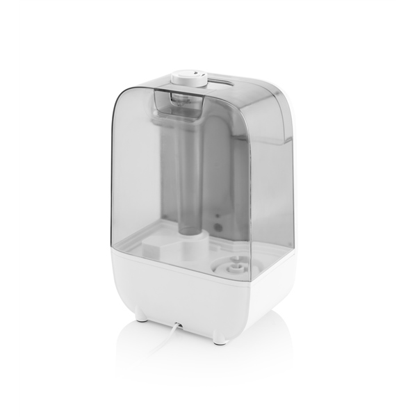Maximální spotřeba vody dosahuje 0.4 l/hod. Doporučený pokojový prostor pro tento zvlhčovač činí 125 m3 . Spotřebič je tak tichý, že jej při práci téměř neslyšíte. V nepřetržitém provozu vydrží až 30 hodin. O automatické vypnutí spotřebiče, pokud dojde v zásobníku voda, se postará vestavěná pojistka. Je možné také nastavit časovač provozu na 1 až 12 hodin. Stabilitu zvlhčovače zajišťují protiskluzové nožky.